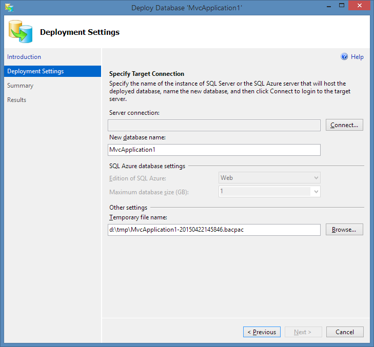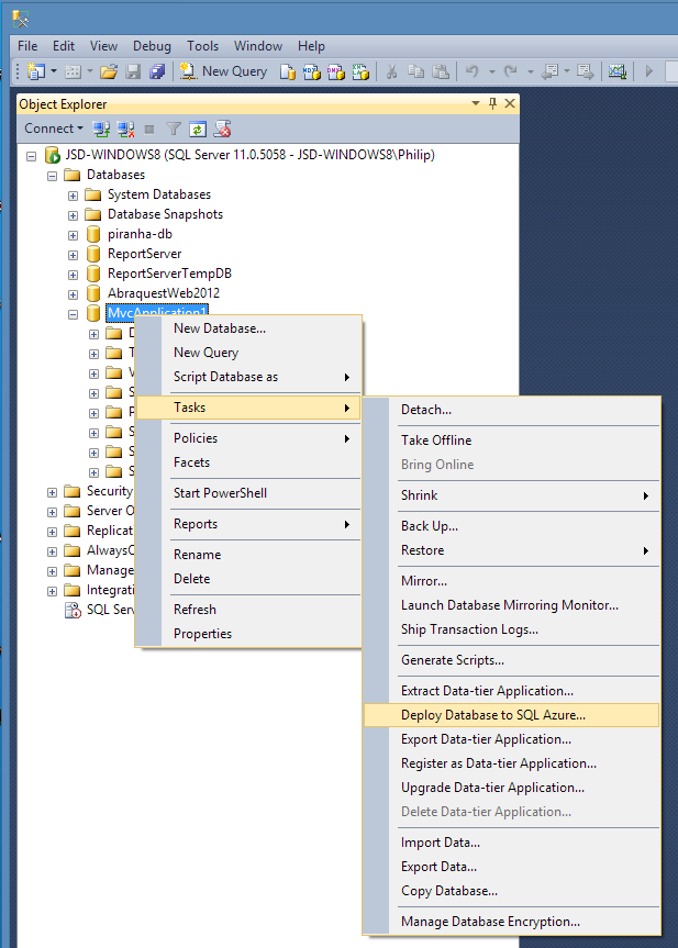 Step 1: Deploy the SQL/Server database to Windows Azure