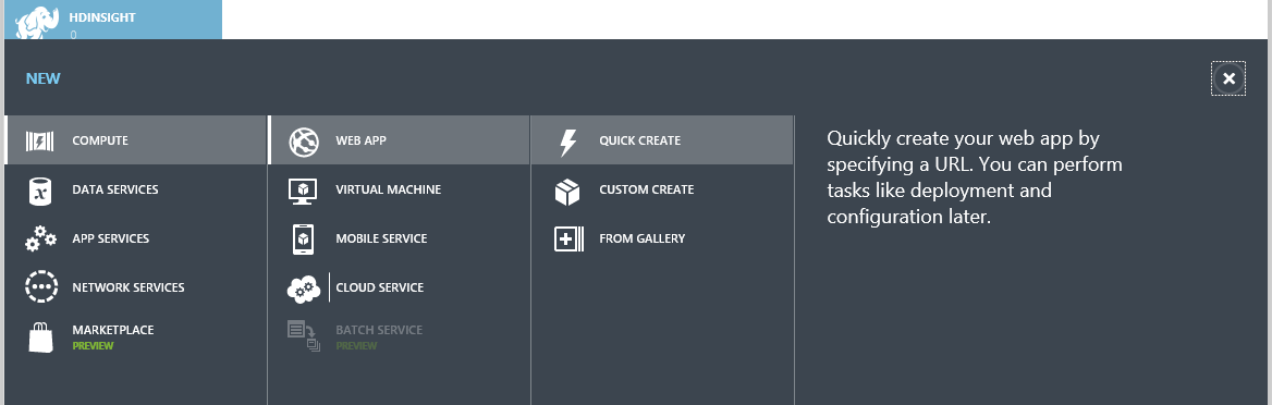 Go to your Azure portal and create a web application using quick start. No need to specify any database details at this point.